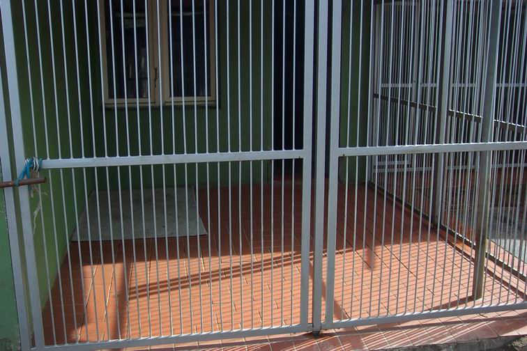Hundesuite für unsere wohnungsgewöhnten Hundis. Der Innenraum ist eingerichtet mit Couch und Sessel. Dazu gehört der zu sehende kleine Auslauf.